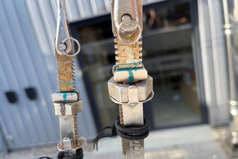 Max Kohlhoff's rig setup is a testament to the precision required in sailing this class. He emphasizes the high angle of the runners and the significant forward mast rake, both critical aspects of his boat's performance. In this setup, the Stamaster turnbuckles play a crucial role, maintaining the rig's alignment and tension. The Stamaster turnbuckles – probably haven’t changed design for 70 years! Functional but effective.